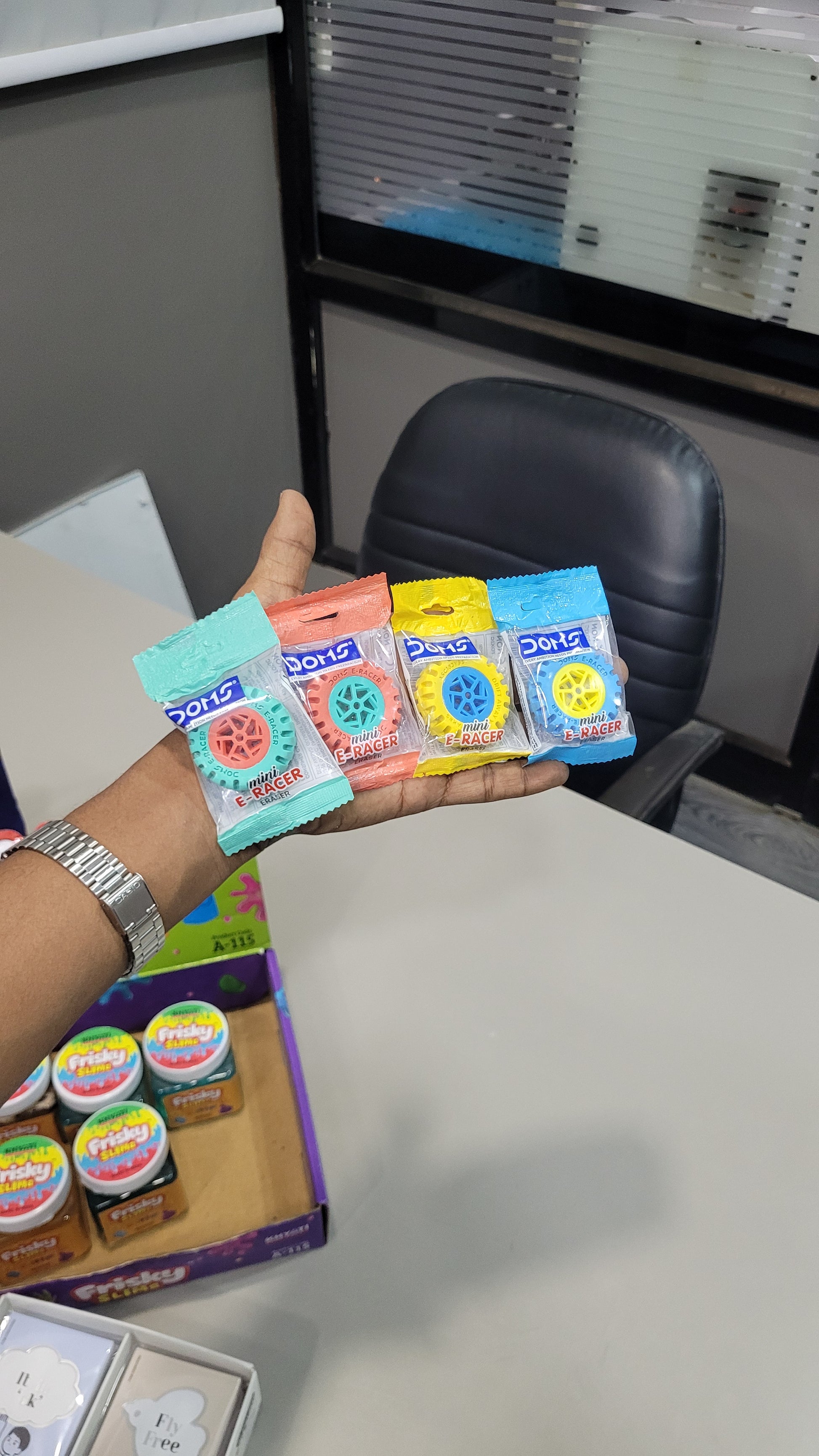DOMS Mini E-Racer Erasers – Fun Wheel-Shaped Erasers for Kids